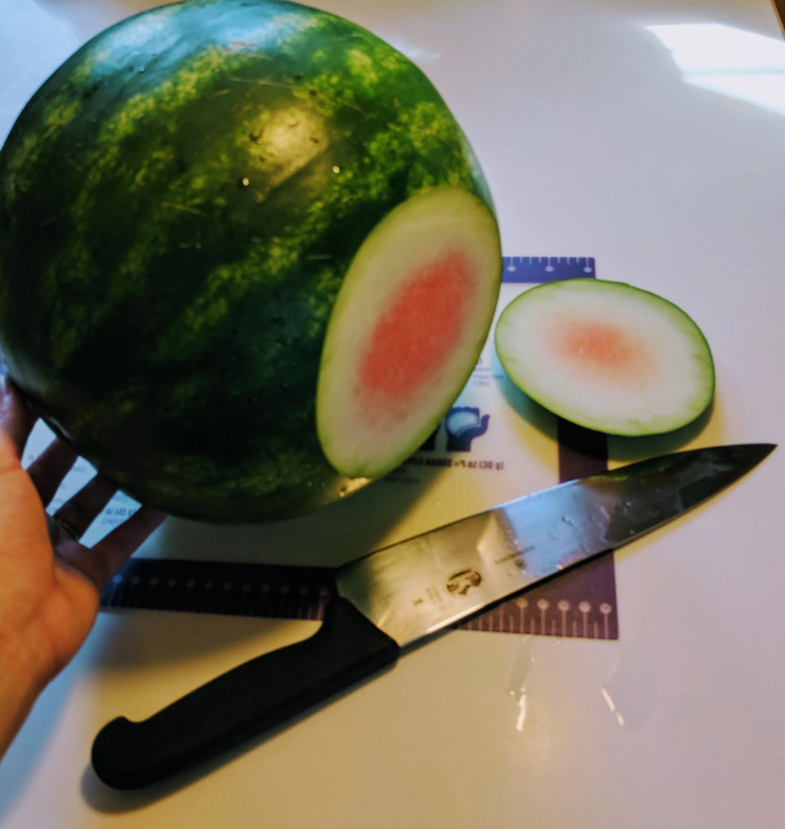 Notice the watermelon juice still on the table -- this was a delicious melon.