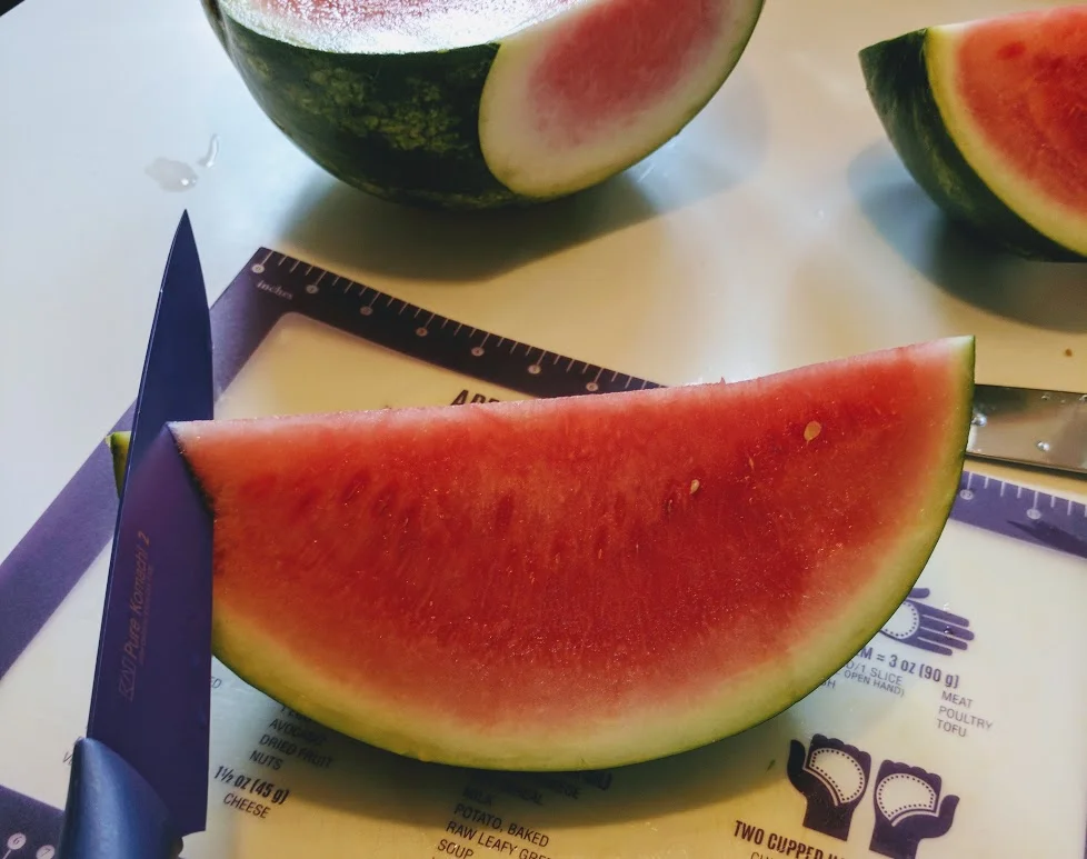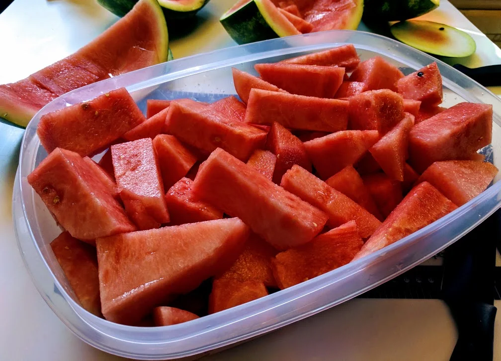 In less than 15 minutes, you can wash, cut, and contain a whole melon for transport to the potluck table.
