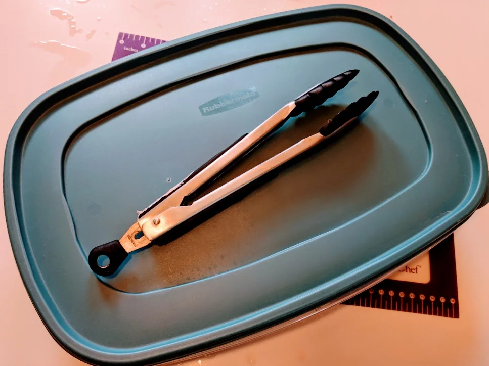 I recommend taking tongs, as they make it so easy to pick up the watermelon pieces for serving. My favorite trick is to put a return-address label on the handle so you can figure out which tongs are yours at the end of the party!